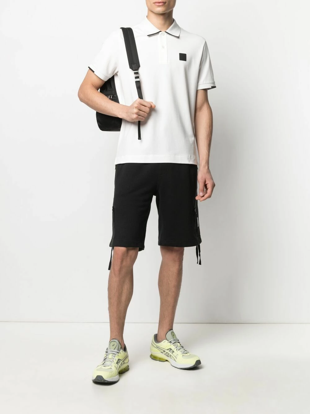 Patch logo sur le devant, col polo, patte de boutonnage sur le devant, manches courtes.