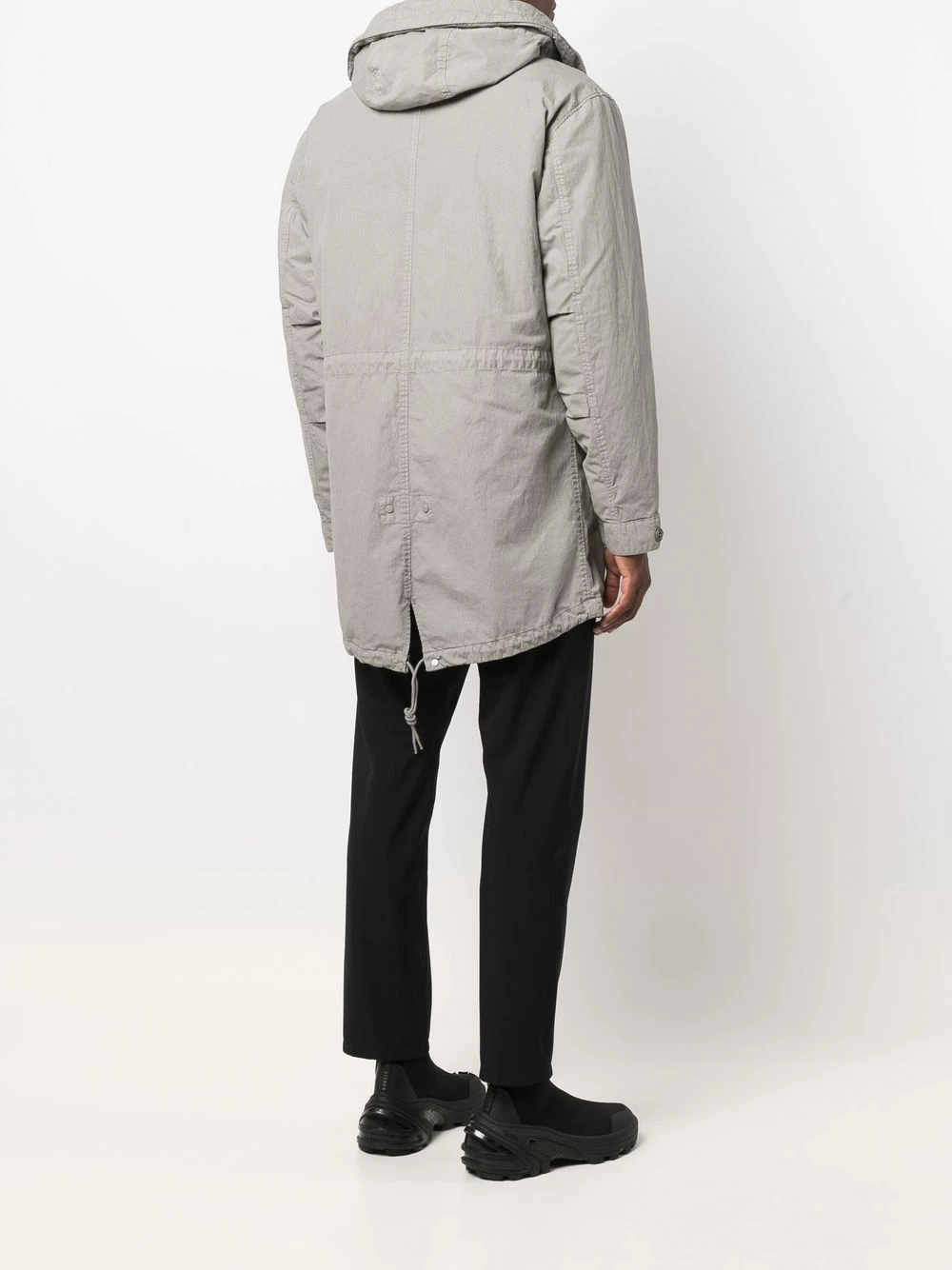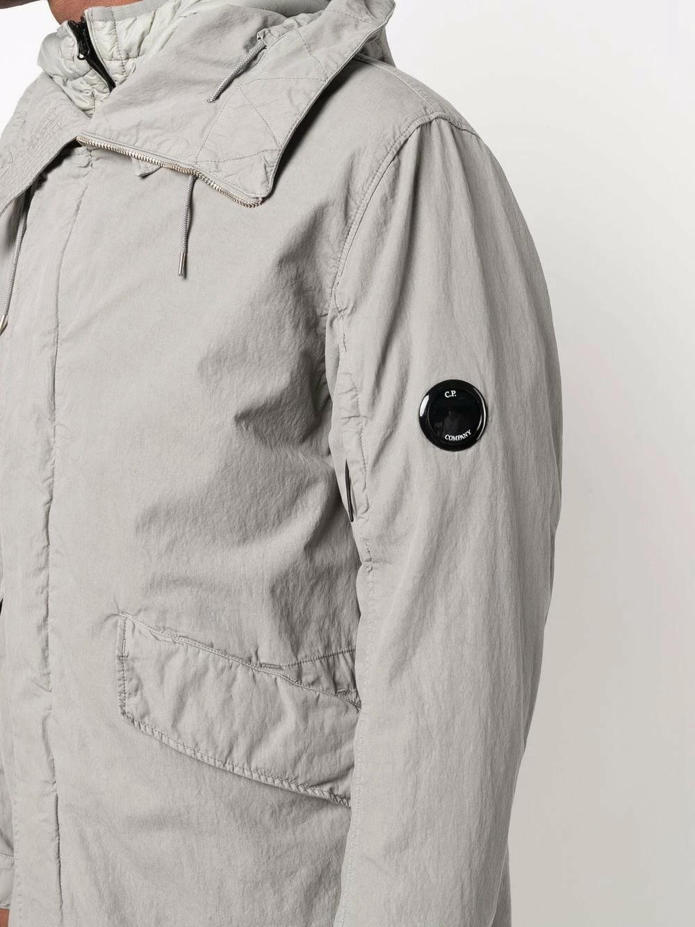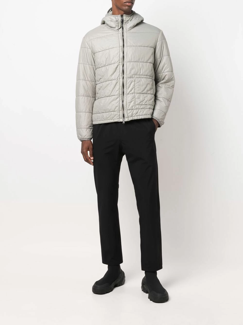 Design matelassé, patch logo sur la manche, capuche classique, fermeture zippée devant, manches longues. Couleur : vert. Matière : coton mélangé.