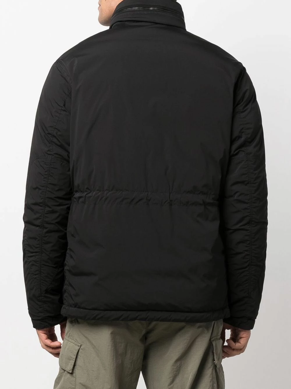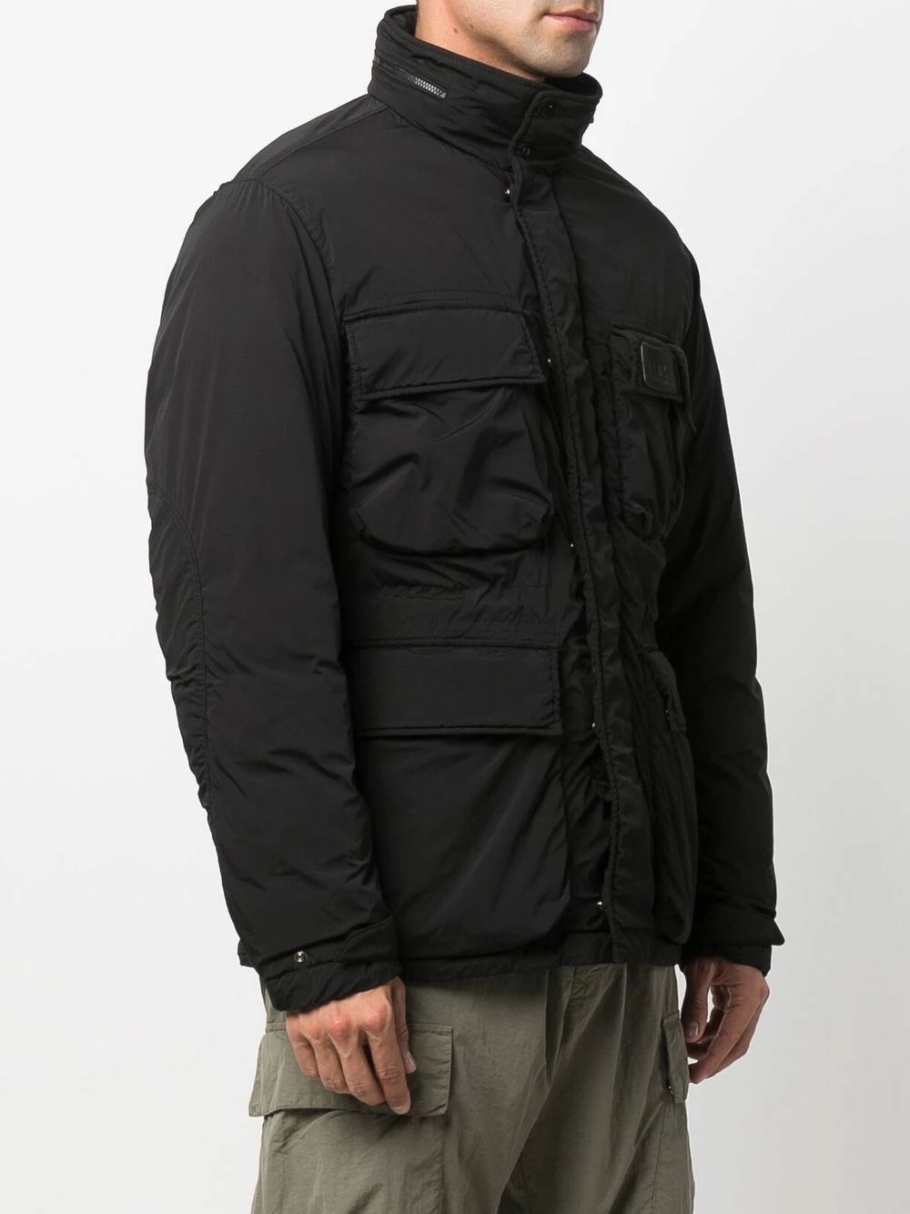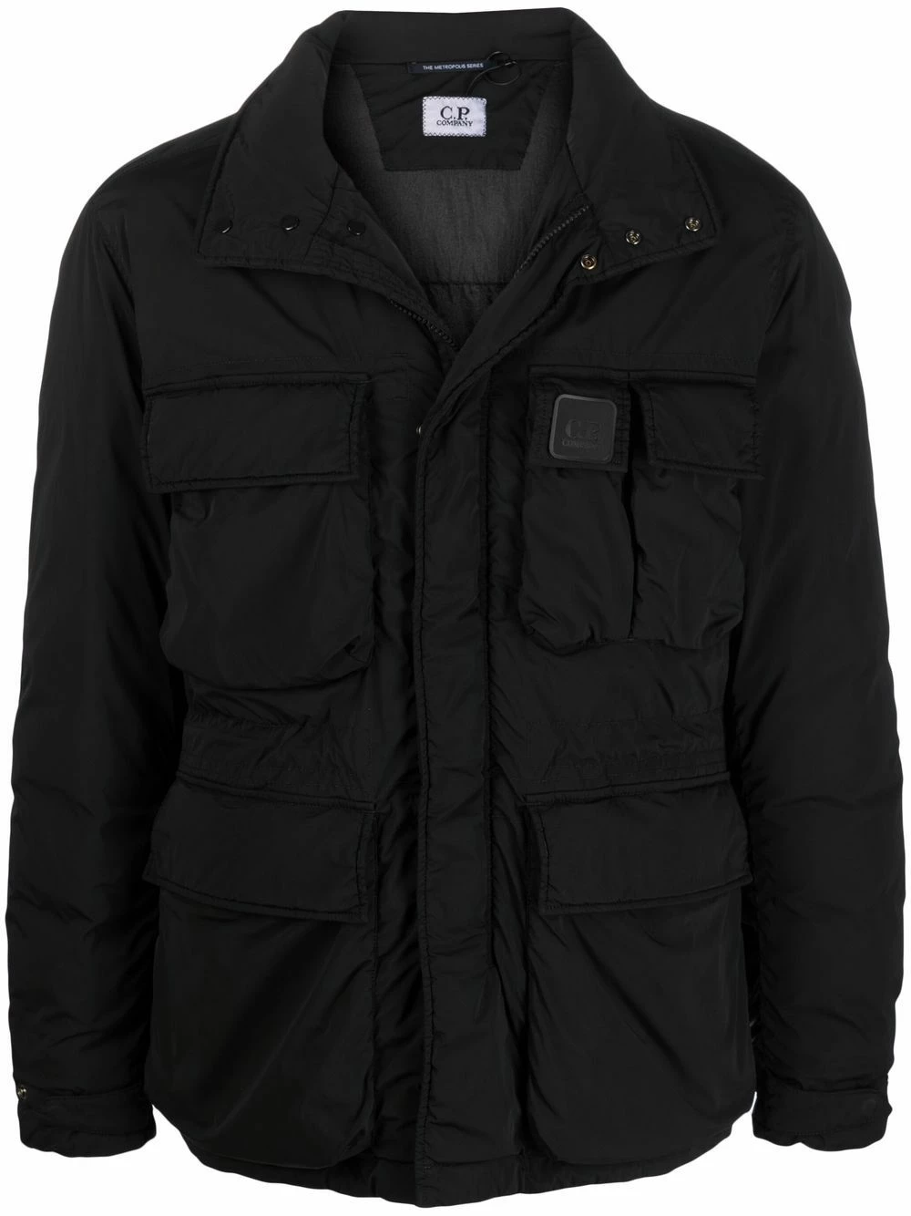 Patch logo sur le devant, empiècements matelassés, poches cargo multiples, fermeture zippée devant, manches longues, ourlet droit. Couleur : noir. Matière : duvet.