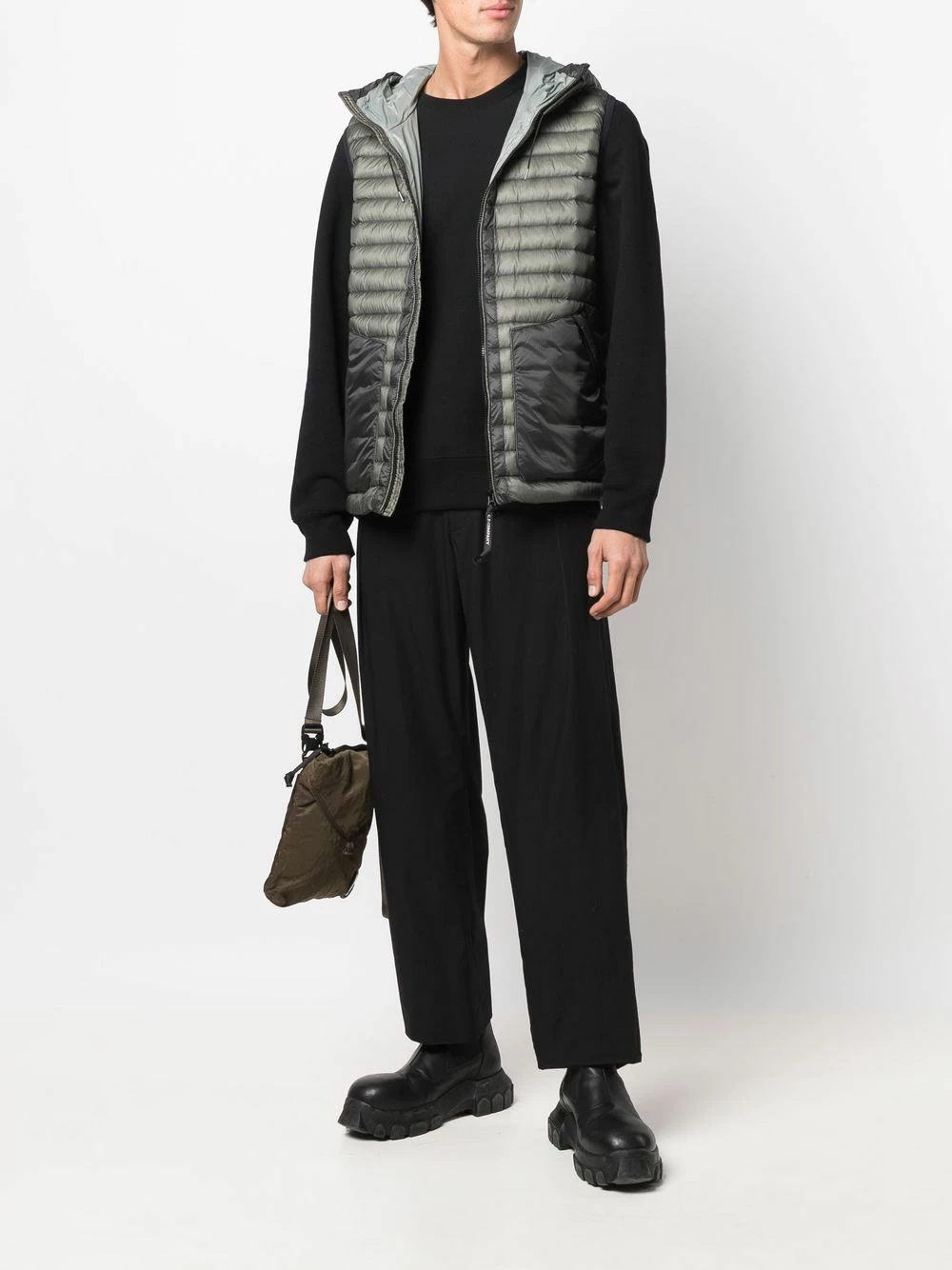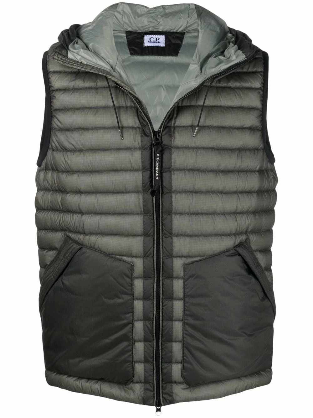 Garnissage en duvet, modèle bicolore, design matelassé, capuche à lien de resserrage, fermeture zippée à double sens sur le devant, design sans manches, deux poches latérales zippées. Couleur : vert.