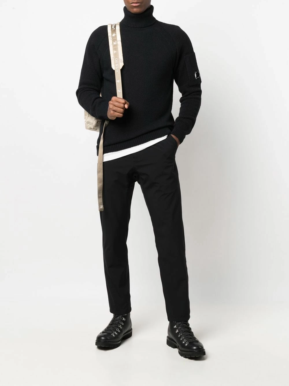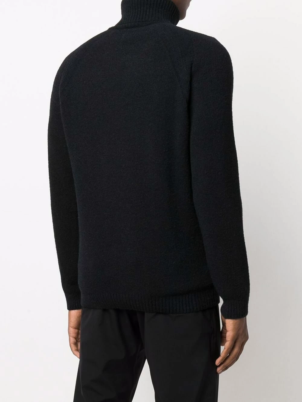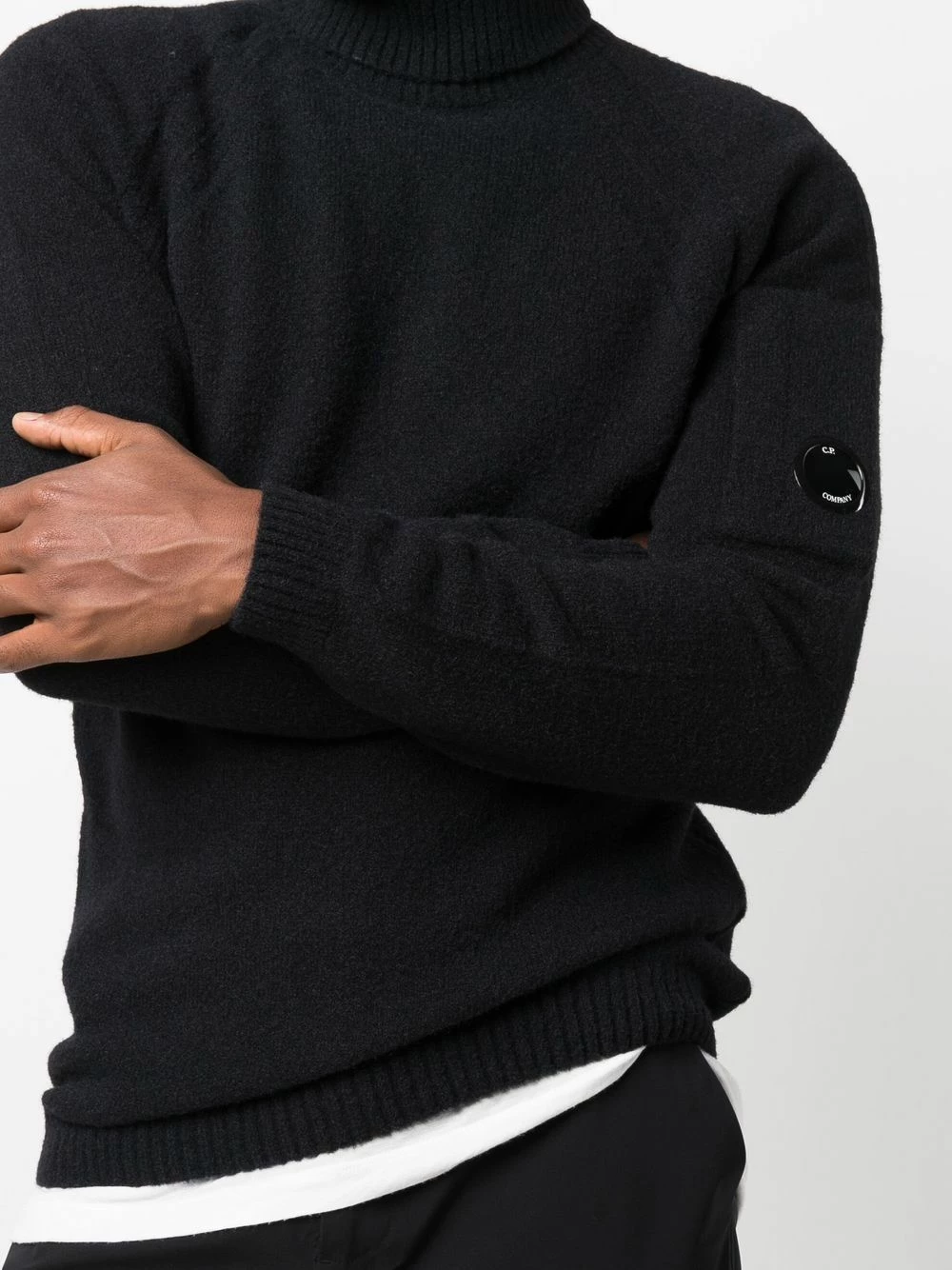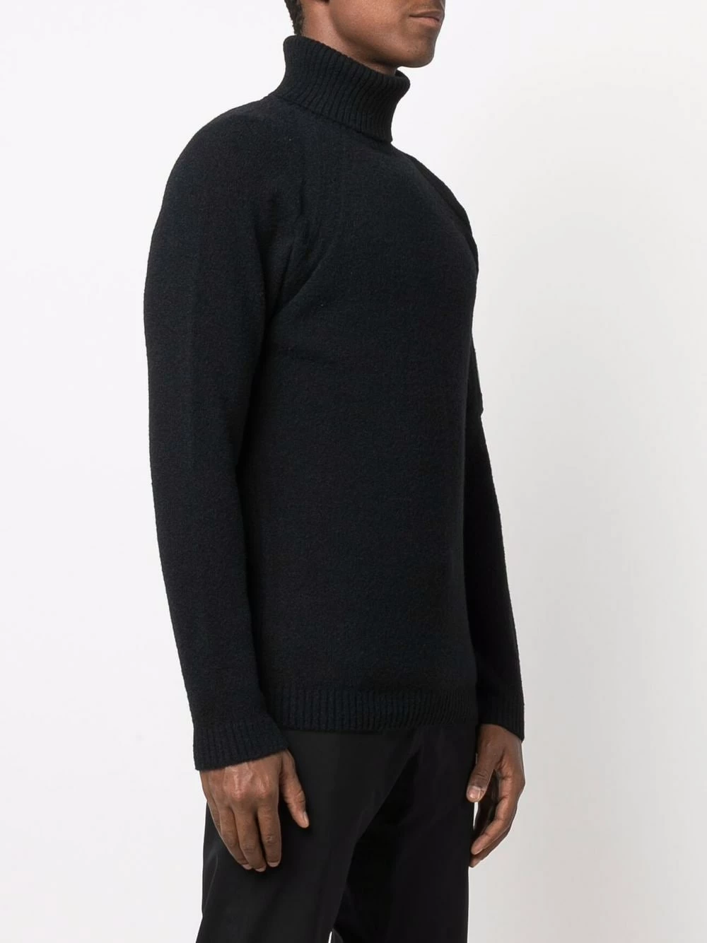 Design en maille, finitions nervurées, verre à détail de décalque, manches longues, col roulé, ourlet droit.